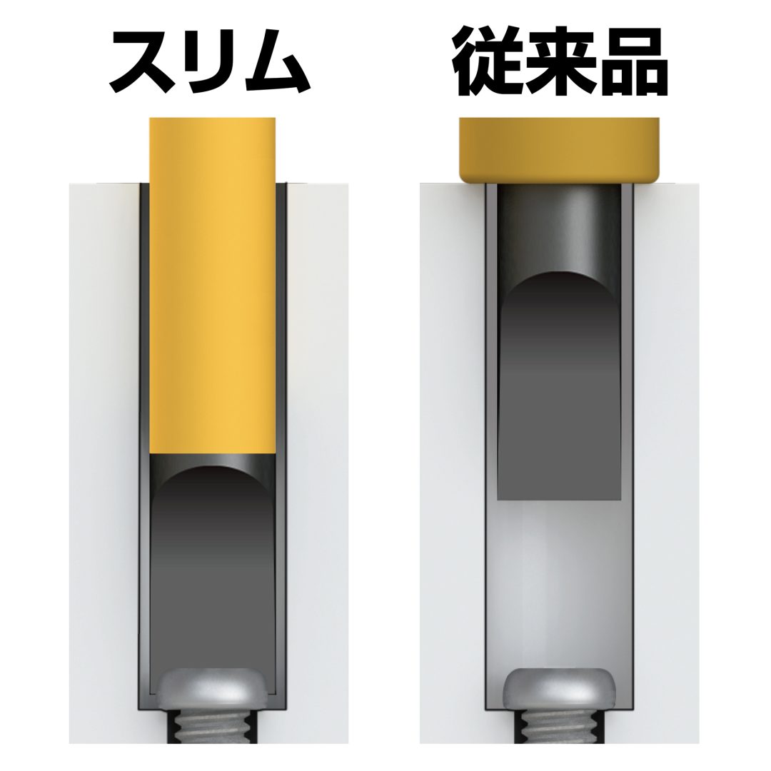 ●絶縁皮膜が付いても軸径は細く、配電盤のような狭い所でも使い易い設計です