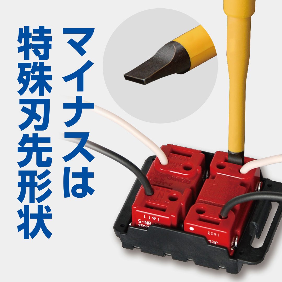 ●マイナスは配線端子のはずし穴に差し込める特殊形状
