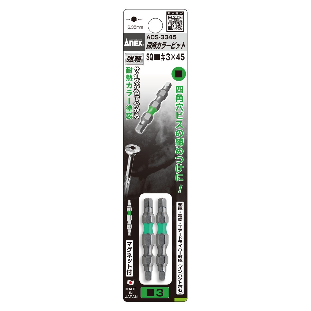 四角カラービット 2本組 ■3×85