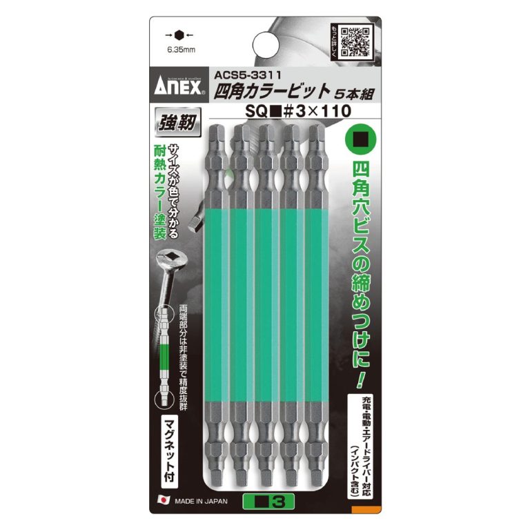 四角カラービット 5本組 ■3×110