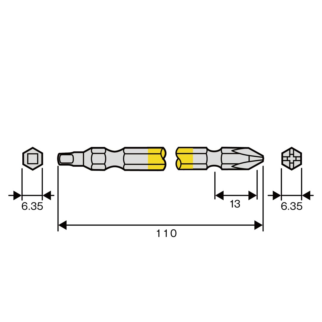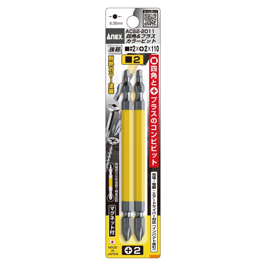 ●四角・プラスのコンビ両頭ビット●色で先端サイズの見分けが簡単●先端精度抜群でアンビルに影響のない両端非塗装