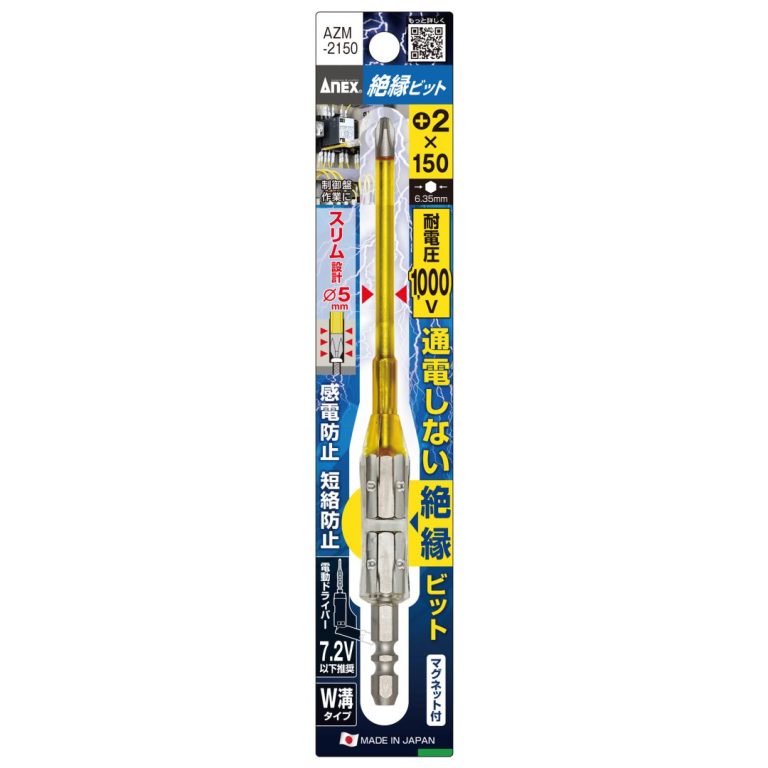 ●通電しないビット(ビット中央をプラスチックで遮断)●電気・通信設備工事などの作業に●耐電圧1000V(10000Vの絶縁耐電圧試験済)●電動ドライバー7.2V以下推奨●狭い箇所に便利なスリム先端●軸カバー色で先端サイズがわかります 黄:+2●電動工具・トルクドライバーを選ばすに使えるW溝タイプ