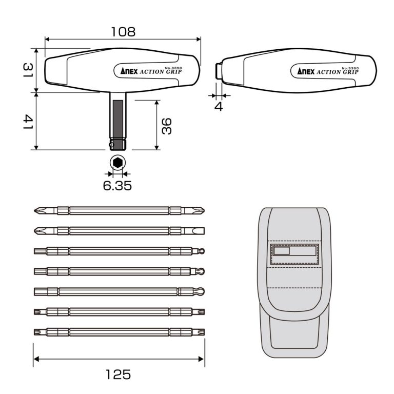 ●ストレート形状とT型形状とをワンタッチで切替え可能なアクションハンドル●ストレート形状:普段のネジ回し(早回し)に●T型形状:力が必要とされるゆるめ始め・増し締めに●ビット差替式(+/-/六角/ボールポイント/ヘクスローブ計14サイズがセットになっているので色々な現場で活躍します)●付属ビットは電動ドライバーには使用できません(ロック不可)が、電動ビットは本ハンドルに使用できます●ハンドルとビット7本を収納できるケース付(ベルトに取付可能)で、携帯工具として便利に使えます●自動車、バイクのメンテナンスや、メンテナンス用出張サポート工具に最適