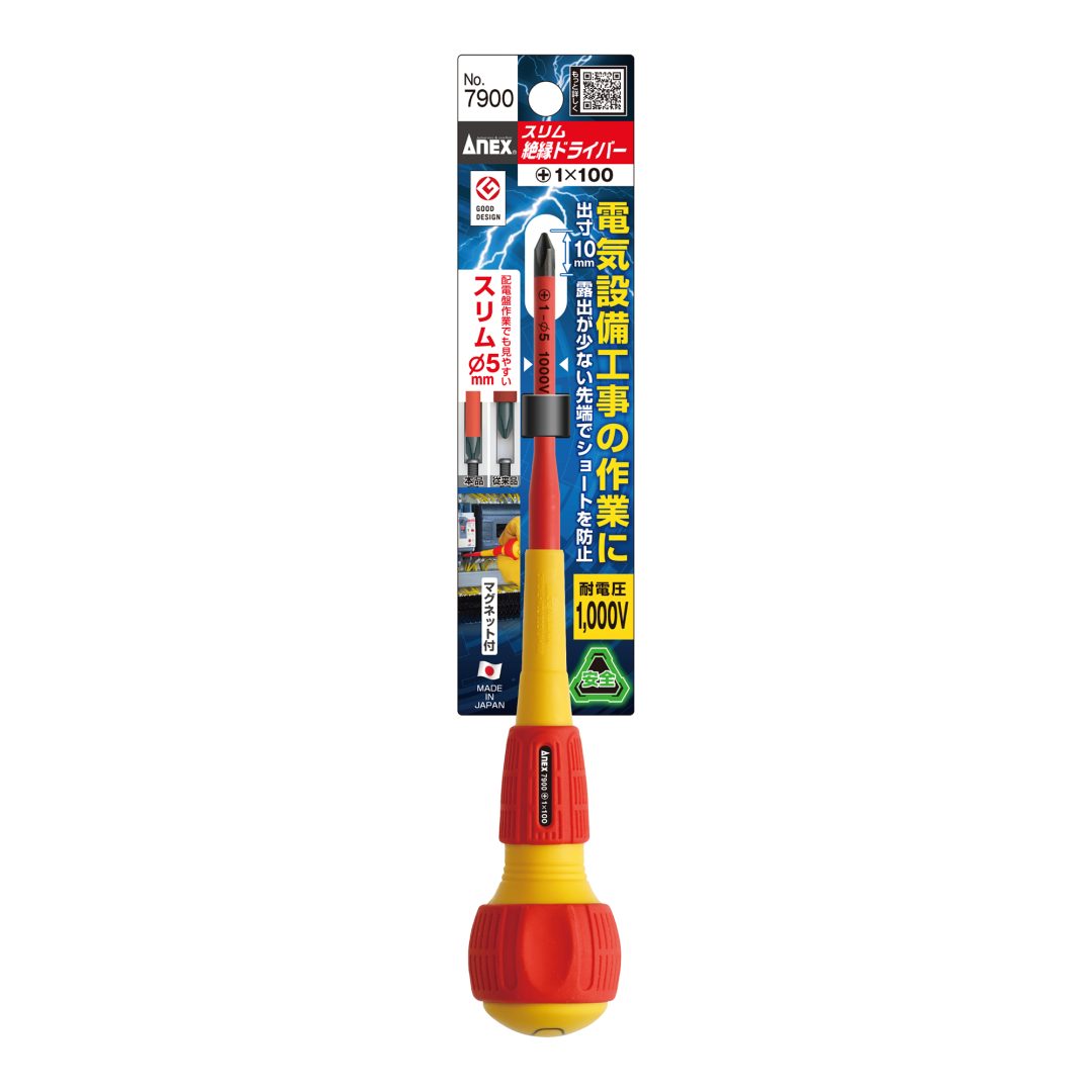 スリム絶縁ドライバー 細軸タイプ +2×100