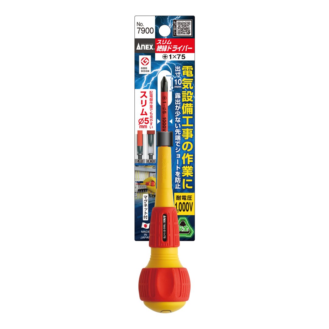●耐電圧1000V。刃先がスリムな絶縁ドライバー