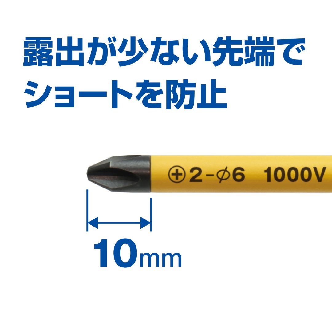 ●耐電圧1000V。刃先がスリムな絶縁ドライバー
