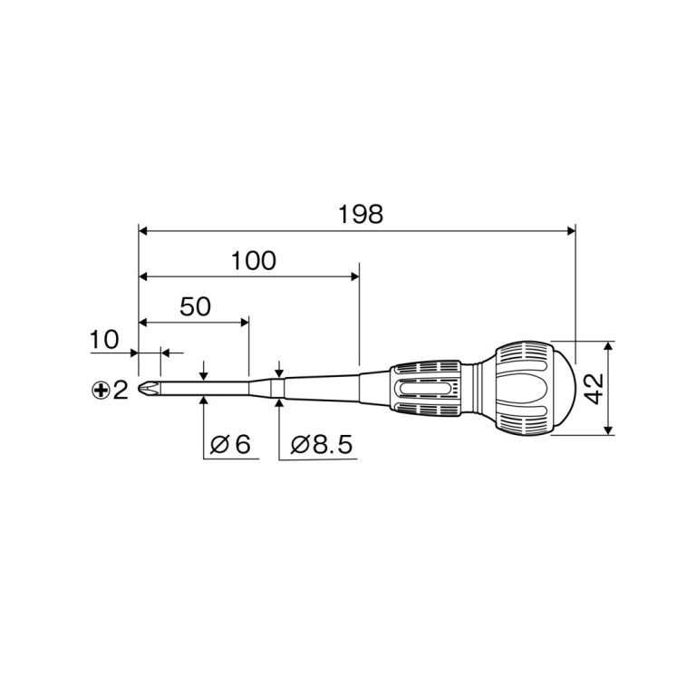 スリム絶縁ドライバー 細軸タイプ +2×100