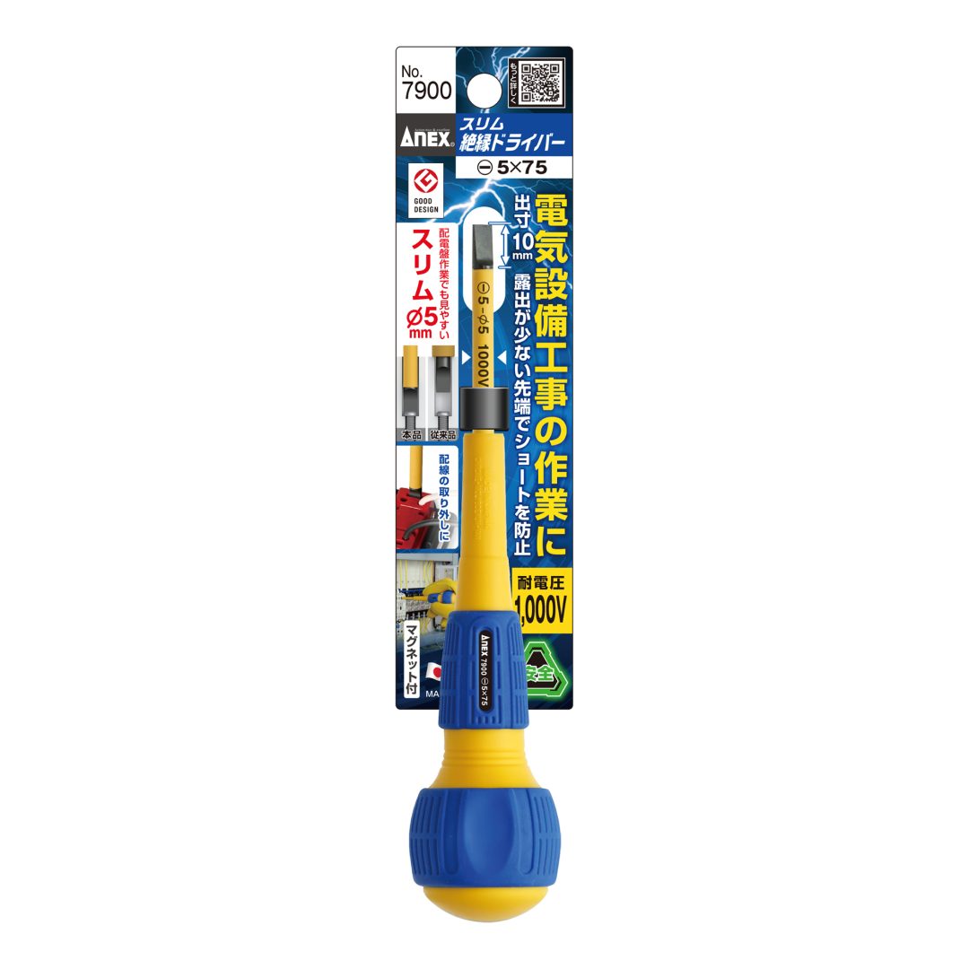 ●耐電圧1000V。刃先がスリムな絶縁ドライバー