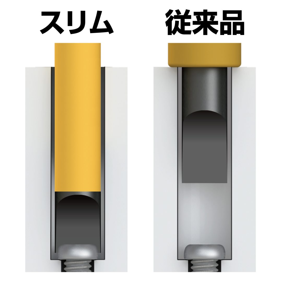 ●絶縁皮膜が付いても軸径は細く、配電盤のような狭い所でも使い易い設計です