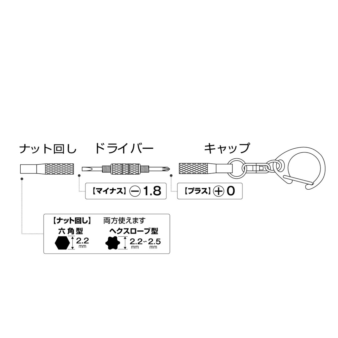 キーホルダー付メガネ用ドライバー -1.8 +0 ナット回し