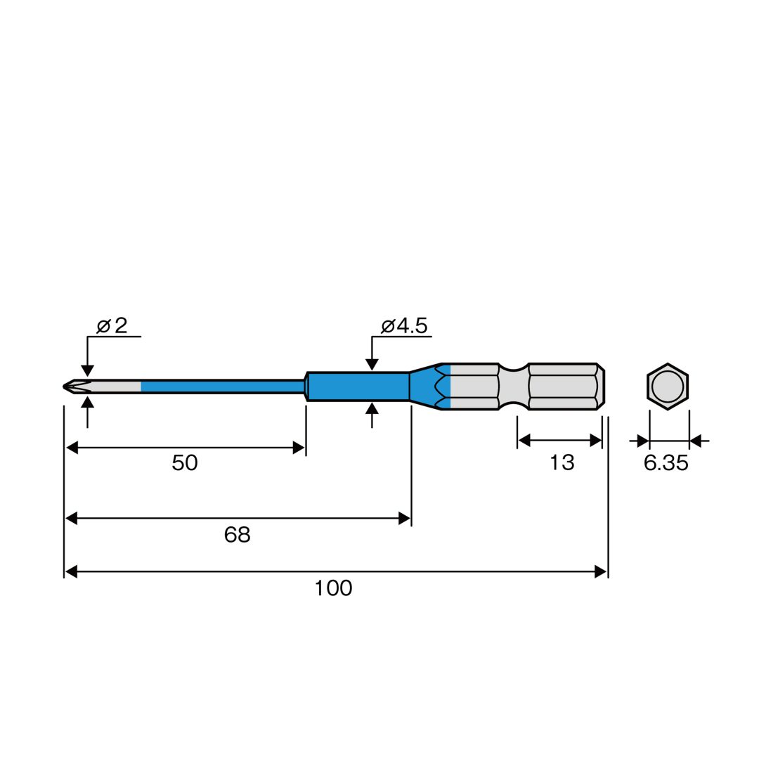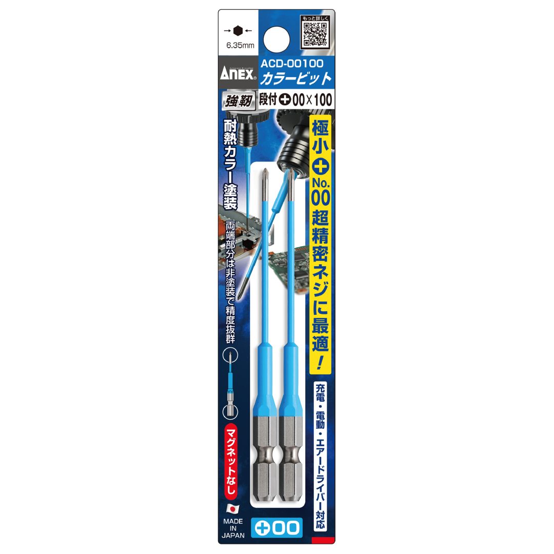 ●色で先端サイズの見分けが簡単●狭く奥まった箇所で便利な段付タイプ●先端精度抜群でアンビルに影響のない両端非塗装