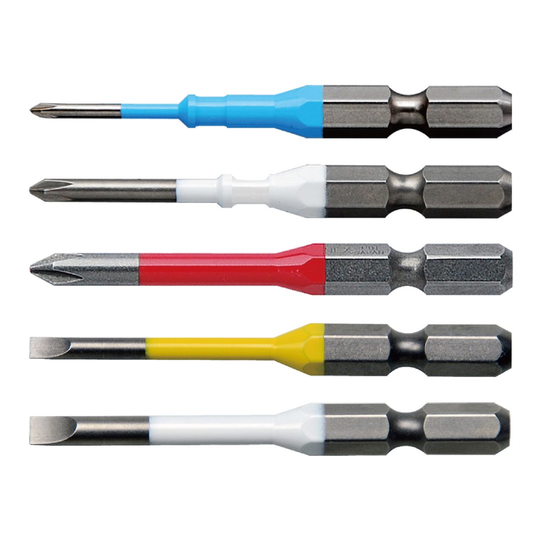 ●色で先端サイズの見分けが簡単●先端精度抜群でアンビルに影響のない両端非塗装●ビット収納袋付