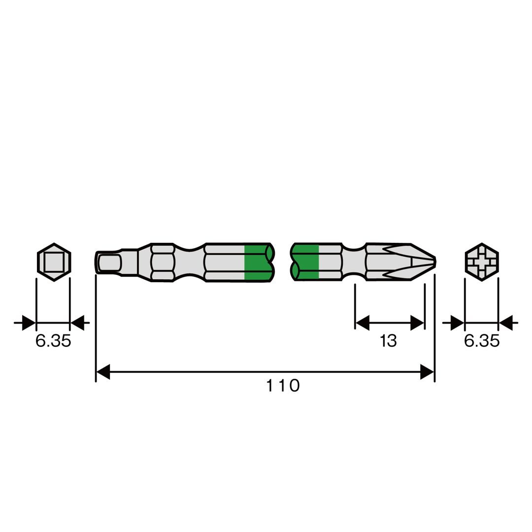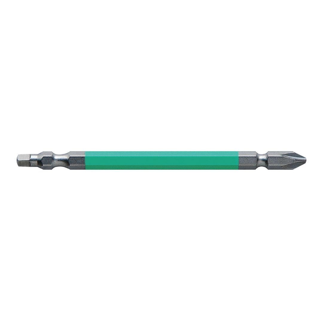 ●四角・プラスのコンビ両頭ビット●色で先端サイズの見分けが簡単●先端精度抜群でアンビルに影響のない両端非塗装