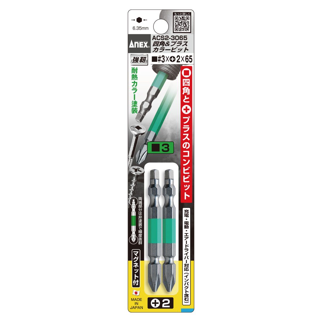 ●四角・プラスのコンビ両頭ビット●色で先端サイズの見分けが簡単●先端精度抜群でアンビルに影響のない両端非塗装