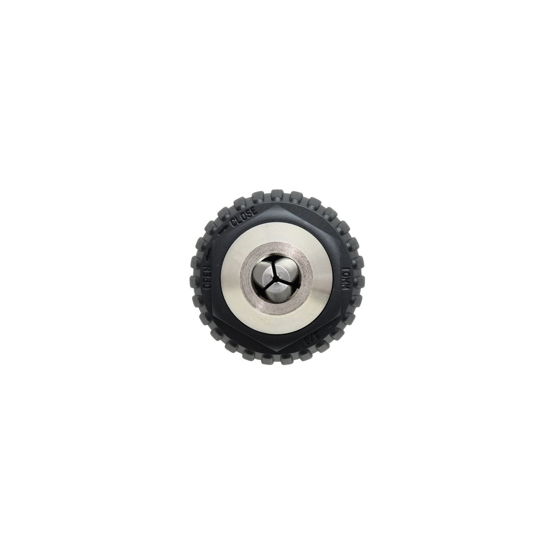 ドリルチャックに先端工具が噛み込んでしまった際は、下記図のように先端工具の取り外しを行ってください。