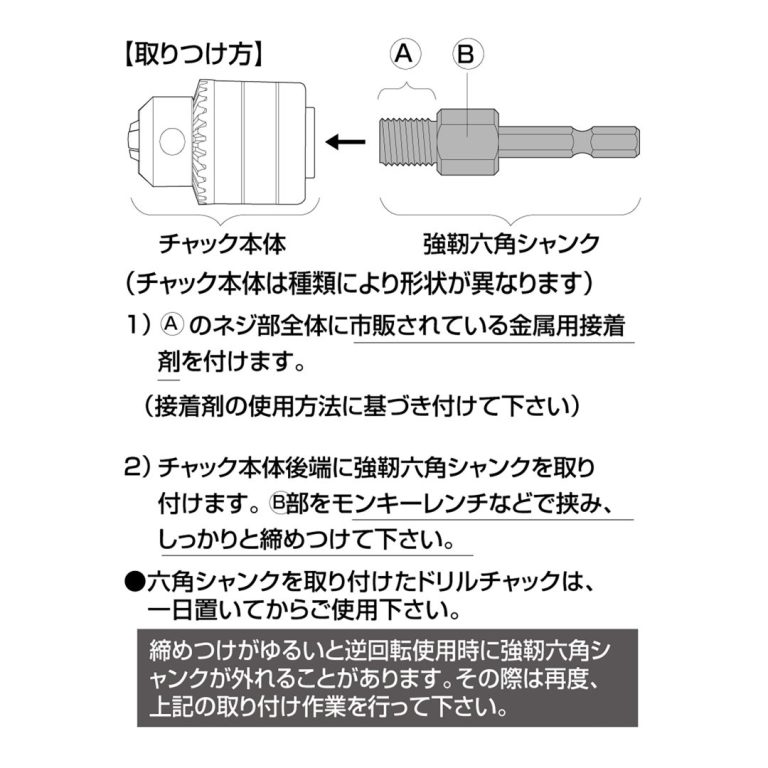 ドリルチャックシャンク交換方法は、下記図の通り行ってください。