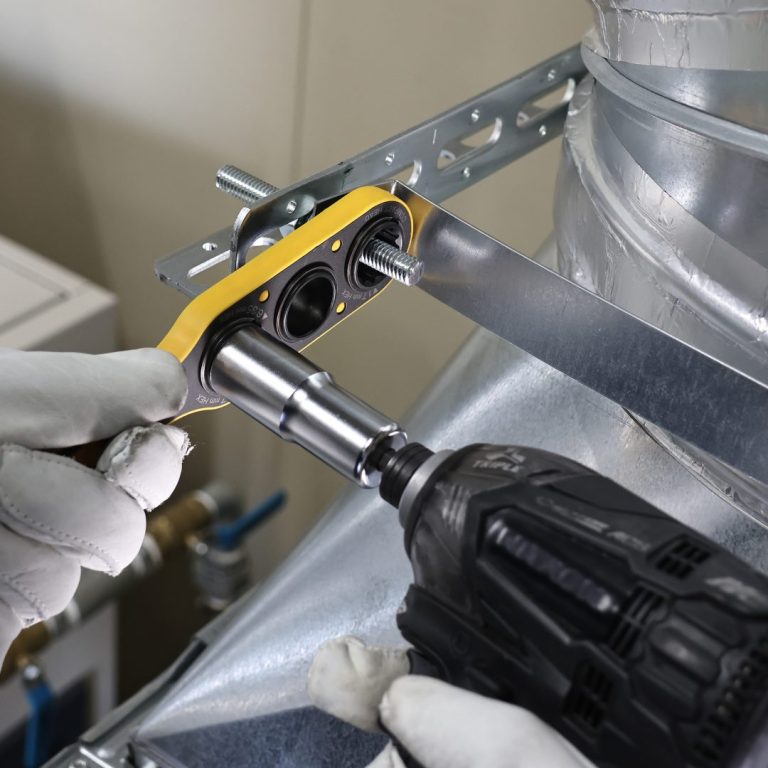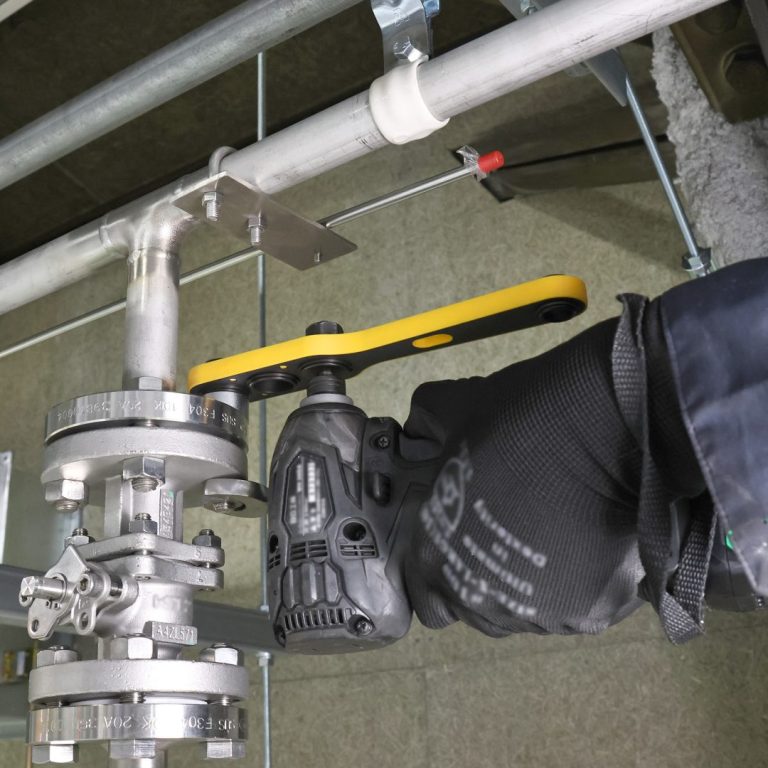 電気設備の架台、ダクトレール、単管パイプ周りのボルト回しに