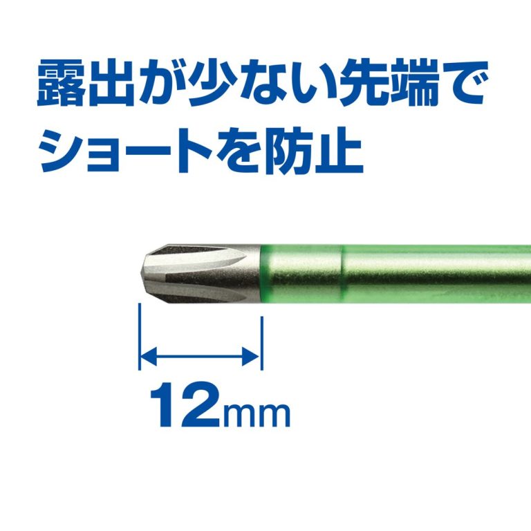 ●通電しないビット(ビット中央をプラスチックで遮断)●電気・通信設備工事などの作業に●耐電圧1000V(10000Vの絶縁耐電圧試験済)●電動ドライバー7.2V以下推奨●狭い箇所に便利なスリム先端●軸カバー色で先端サイズがわかります 緑:+3●電動工具・トルクドライバーを選ばすに使えるW溝タイプ